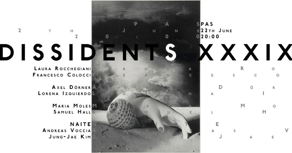 DISSIDENTS XXXIX Laura Rocchegiani – saxoFrancesco Colocci – guitar, objects, electronics Axel Dörner – trumpetLorena Izquierdo – voice action Maria Moles – drumsSamuel Hall – drums NAITEAndreas Voccia – electronicsJung-Jae […]