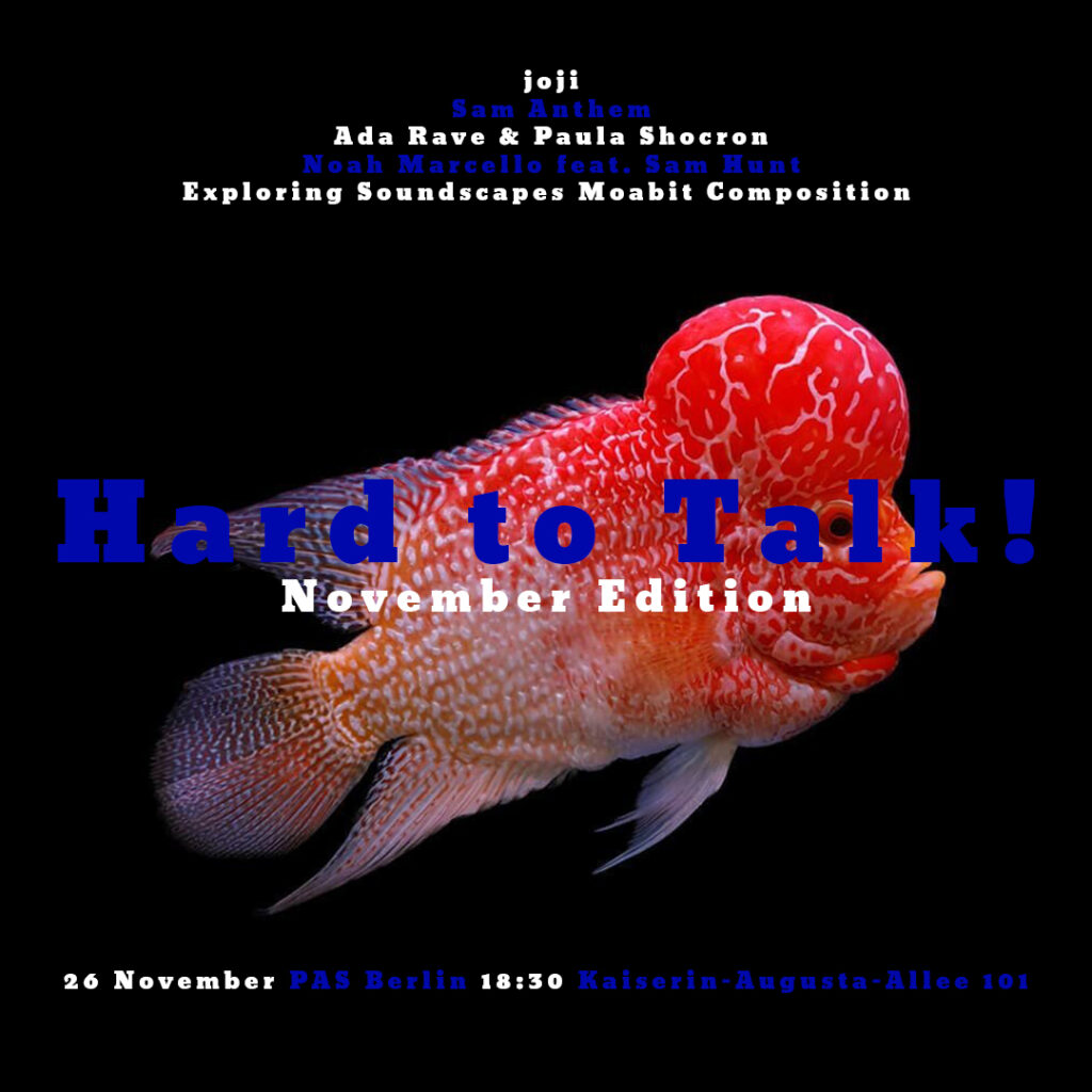 Hard to Talk! November edition…what about smell of the silence under the water? Sam Anthem – steel pipe instruments, electronics Ada Rave – tenor saxophonePaula Shocron – piano joji – […]