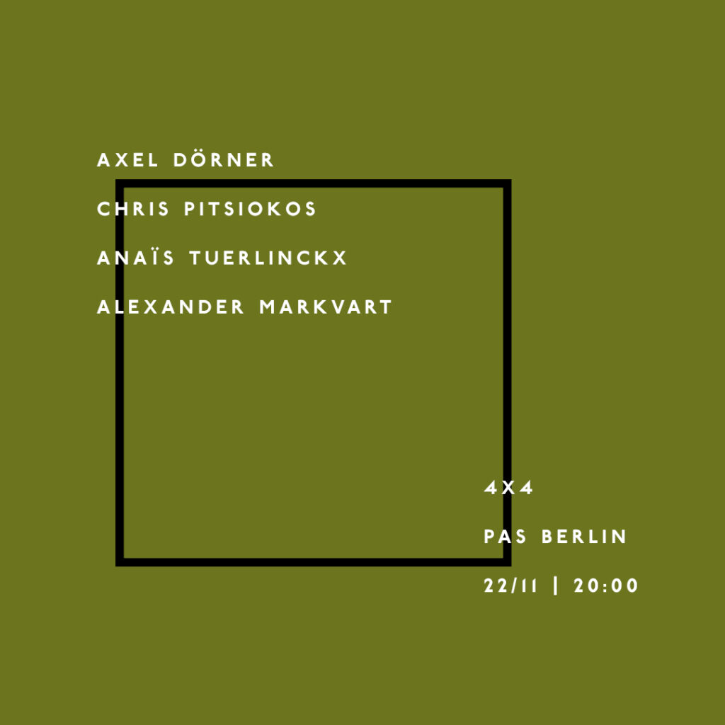 4×4new concert series at PAS for quadrophonic solos. Axel Dörner – trumpet, electronics Chris Pitsiokos – saxophone, electronics Anaïs Tuerlinckx – paino Alexander Markvart – feedback, metal plate entrance in […]