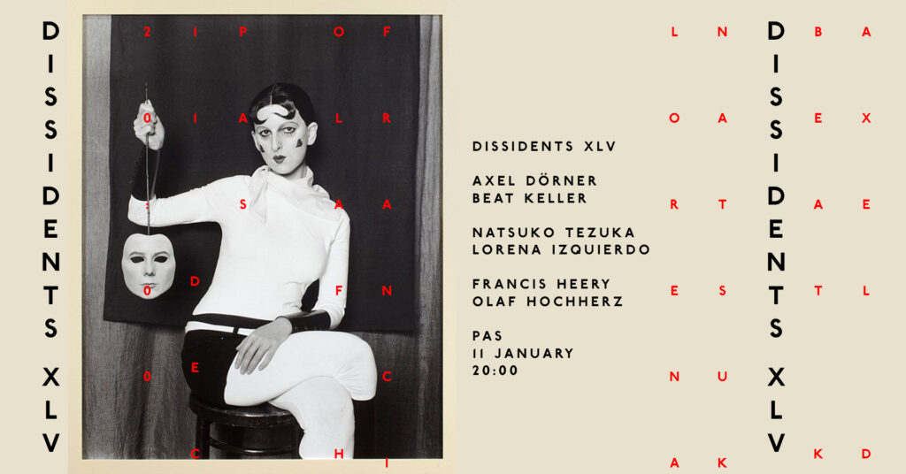 DISSIDENTS XLV Axel Dörner, trumpetBeat Keller, electric guitar Natsuko Tezuka, danceLorena Izquierdo, voice action Francis Heery, electronicsOlaf Hochherz, drehteller Entrance in the courtyard, Aufgang II, 1OGDoors 20:00, music a bit […]