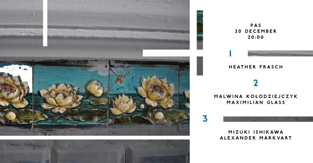 Wednesday concert: Heather Frasch – empty containers & electronicslive version of a composition “Atmospheric Ghost Lights” Malwina Kołodziejczyk – saxophoneMaximilian Glass – electronics, objects Mizuki Ishikawa – electronics, objects, feedbacksAlexander […]
