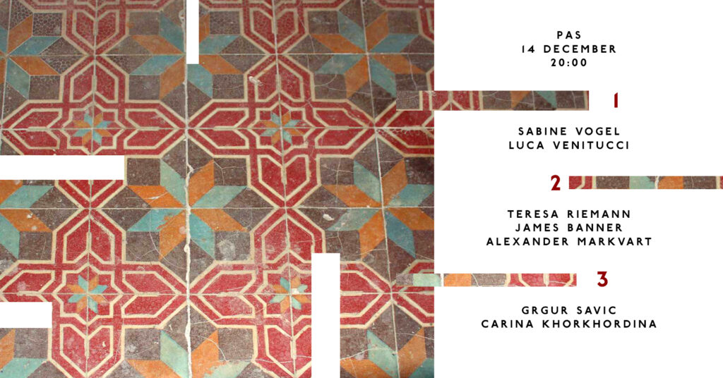 Sunday concert: POGO / BEYERMat Pogo – vocals, electronicsKriton Beyer – daxophone, fx Mehmet Ali Simayli – drums, percussionKuntay Seferoglu – electronics, controllers Entrance in the courtyard, Aufgang II, 1OGDoors […]