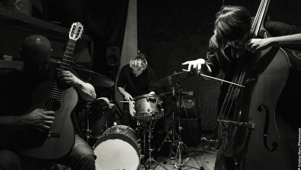 Thursday concert: Rupp/Rößler/Hall:Olaf Rupp – KonzertgitarreIsabel Rößler – KontrabassSamuel Hall – Schlagzeug Entrance the courtyard, Aufgang II, 1OGDoors 20:00, music a bit later