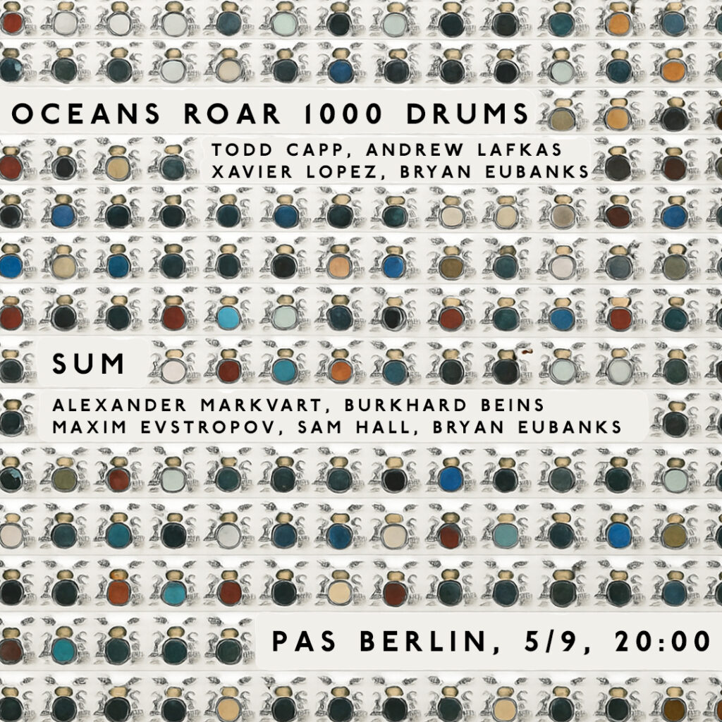 Friday concert: Oceans Roar 1000 DrumsTodd Capp – drums, cymbals (NYC)Andrew Lafkas – doublebass (Norway)Xavier Lopez – modular synthesizerBryan Eubanks – saxtronics SUM (Studio of Unconscious Music): plays some songs […]