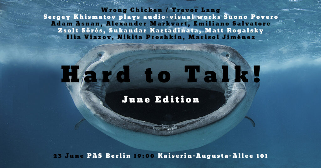 Hard to Talk! June edition…very hard to talk because its noisy here… Sergey Khismatovplays audio-visual works Rotonda and Suono Povero Trevor Lang Kartadinata/Rogalsky/SőrésZsolt Sőrés – viola, electronicsSukandar Kartadinata – guitar, electronicsMatt Rogalsky […]