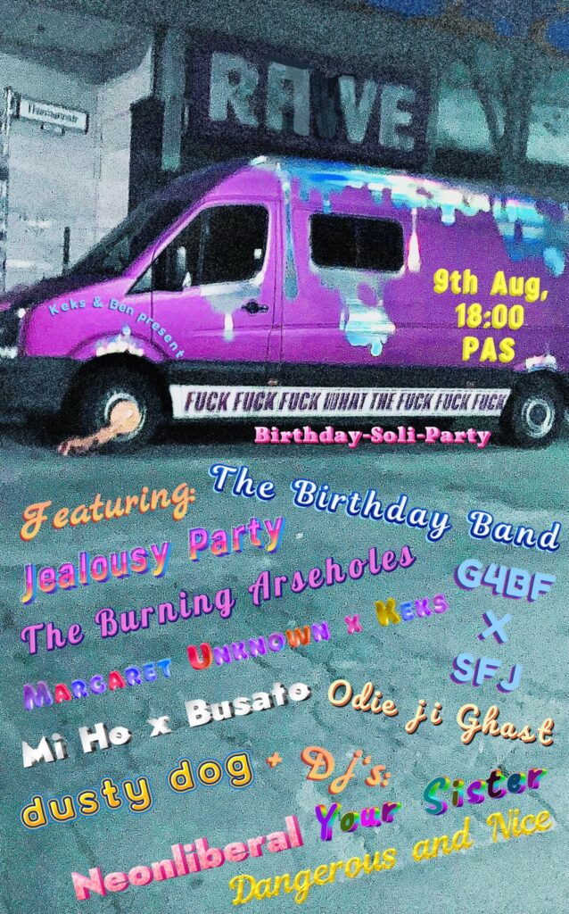 BDAY – SOLI – PARTY The Birthday Band:Utku Tavil – NoiseIpek Odabasi – NoisePablo Leinard – Sax Jelousy Party:Roberta Wjm Andreucci – Playback devices / voiceMatt Pogo – Playback devices […]